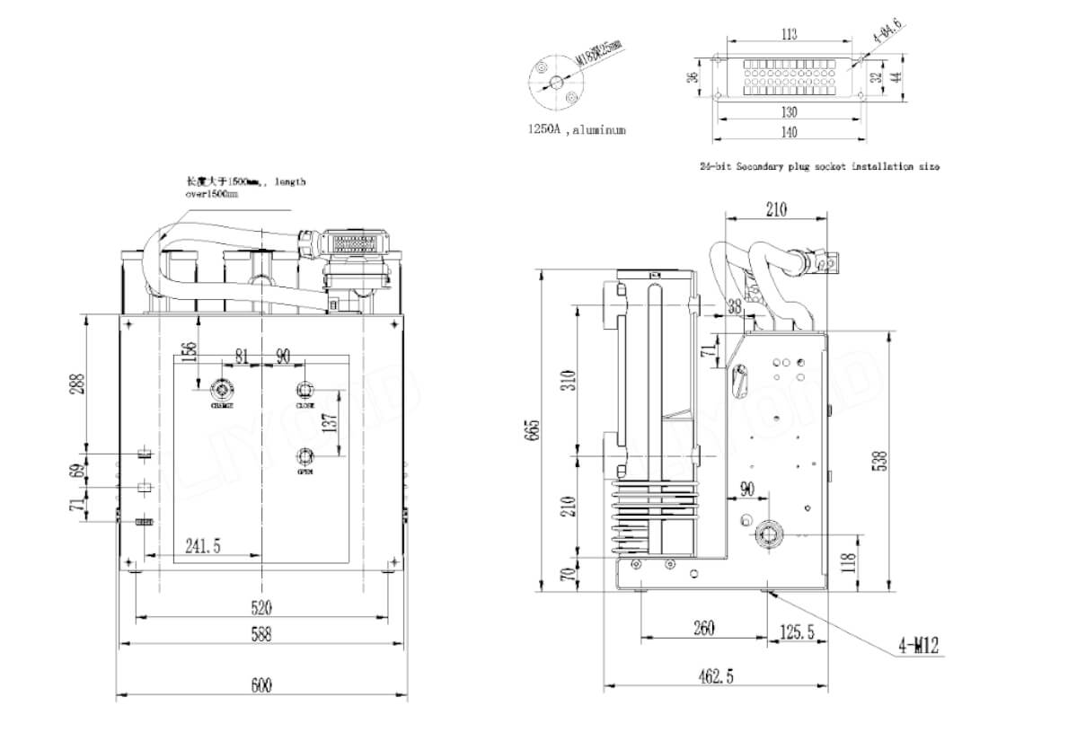CT68-24 Vacuum Circuit Breaker vedtager fuldt lukket struktur (central type), har god vandtæt og fugtbeskyttet ydeevne og kan arbejde under barske miljøforhold. Det har en god termisk stabilitet af kortslutningens fuld belastningsstrøm, stærk overspændingsevne og kortslutningsbrudskapacitet. Derudover kan det hurtigt forbinde ledninger, kabler og andet udstyr til at forbedre installationseffektiviteten og gøre installation og vedligeholdelse af site mere praktisk.