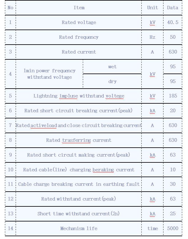 FLN-40,5 kV belastning Break switch Brug SF6 gas som lysbue-slukning og isolerende medium. Der er tre arbejdsstationer: åbning, lukning og jordforbindelse i kontakten. Det har lille volumen, der installerer let at bruge, stærk miljøadaptabiliy og anden karakterist.