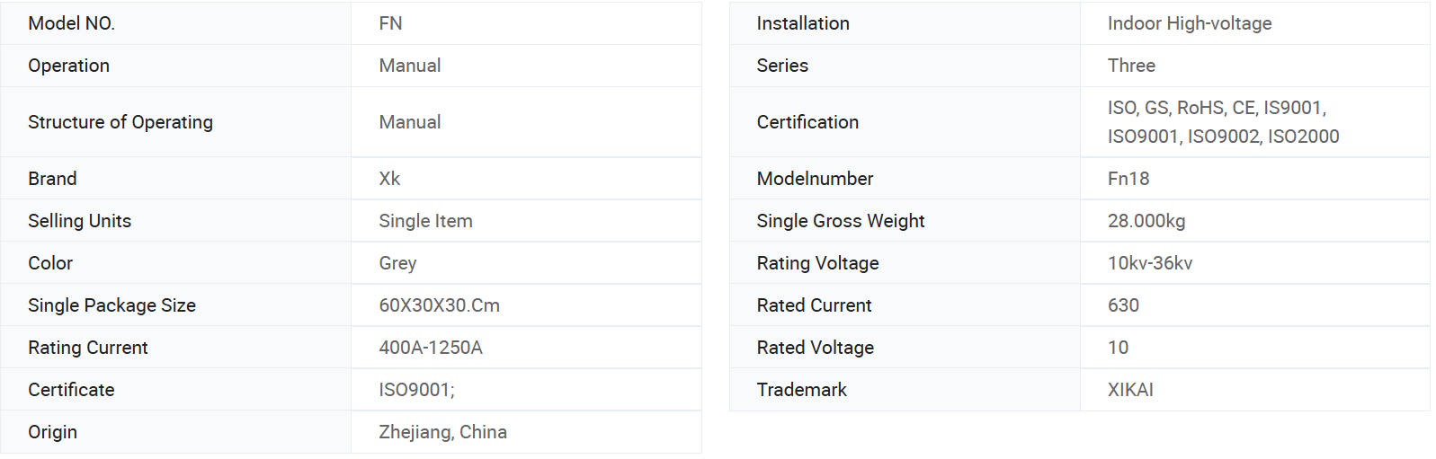 FN18- 口 er et generelt formål, tre-polet, belastningsafbryder, der tilbyder switchgear-ejere og samler fordelene ved en avanceret afbrydelsesteknologi og bevist, pålidelig ydelse i et kompakt design. Kontakten er tilgængelig for switchgear-samlere som en byggesten til metalindkastet og PAD-monterede switchgear-applikationer i ratings fra 12-40,5 kV.