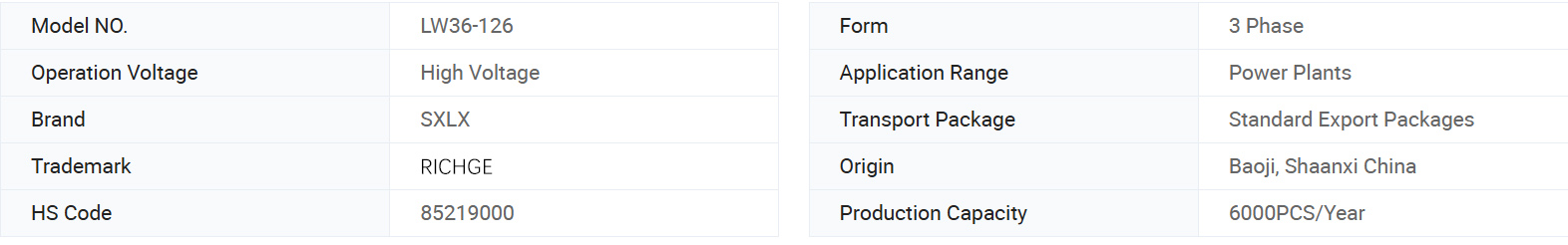 Dette produkt bruger SF6 -gas som både lysbue -slukning og isolerende medium. Det er udstyret med den nyeste selvtegnede lysbue-slukningsteknologi og har en ny fjederdrevet mekanisme. LW36-126/3150-40 tilbyder langt elektrisk liv, lav driftsindsats, lav støj og høj pålidelighed, hvilket gør det til det mest pålidelige valg for områder med høj højde eller 132 kV kraftsystemer. Det kan også erstatte importerede produkter af samme type.