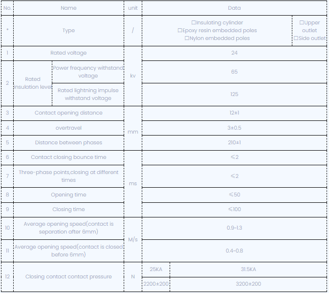 Betjeningsmekanismen for VBI-24-sidemonteret type vakuumkredsløb bægerglas bruges forår til opbevaringsenergi, som kan betjenes af to måder, manuel eller elektrisk. Egenskaberne er i overensstemmelse med GB1984-89, JB3855-96<10kv Indoor High Voltage Vacuum Circuit Breaker General Technical Specifications>, Relevante bestemmelser i IEC56 -standard.
