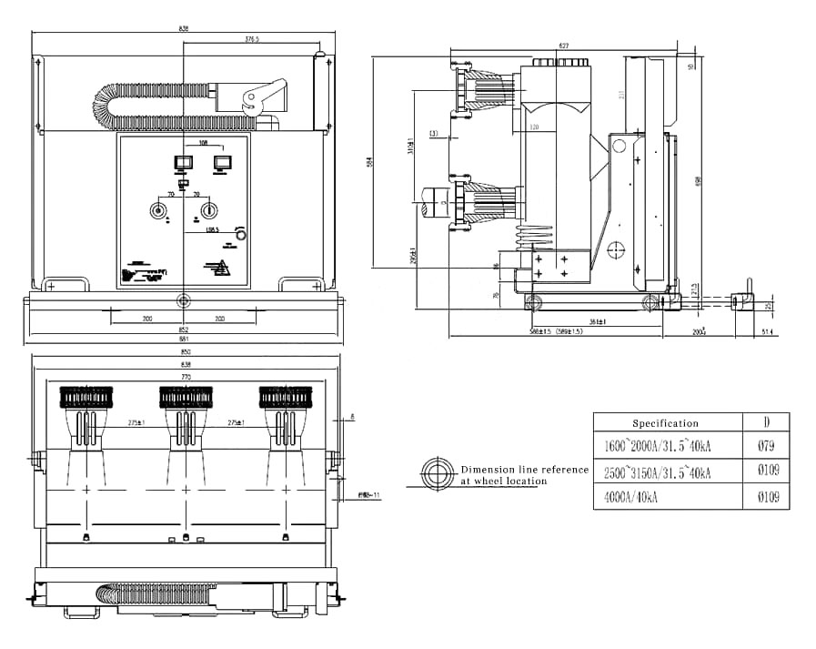 VS1-12/4000 Trolley Type Vacuum Circuit Breaker Isolation Cylinder High Current 4000A