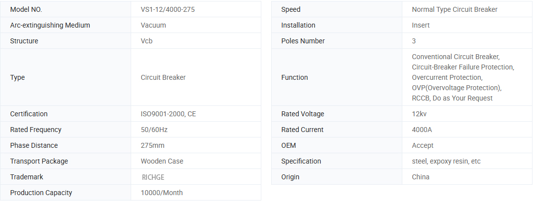 VS1-12 Type Vacuum Circuit Breaker er en slags indendørs højspændingsafbryderenhed, der bruges i AC-trefaset kraftsystem med frekvens 50Hz, nominel spænding 12 kV til at være beskyttelses- og kontrolenheden. På grund af den specielle overlegenhed af vakuumafbrydere, især egnet til applikationer, der kræver hyppig drift ved nominel driftsstrøm eller flere åbne kortslutningsbrud i den aktuelle placering. Det er især egnet til det sted, der kræver hyppige operationer.