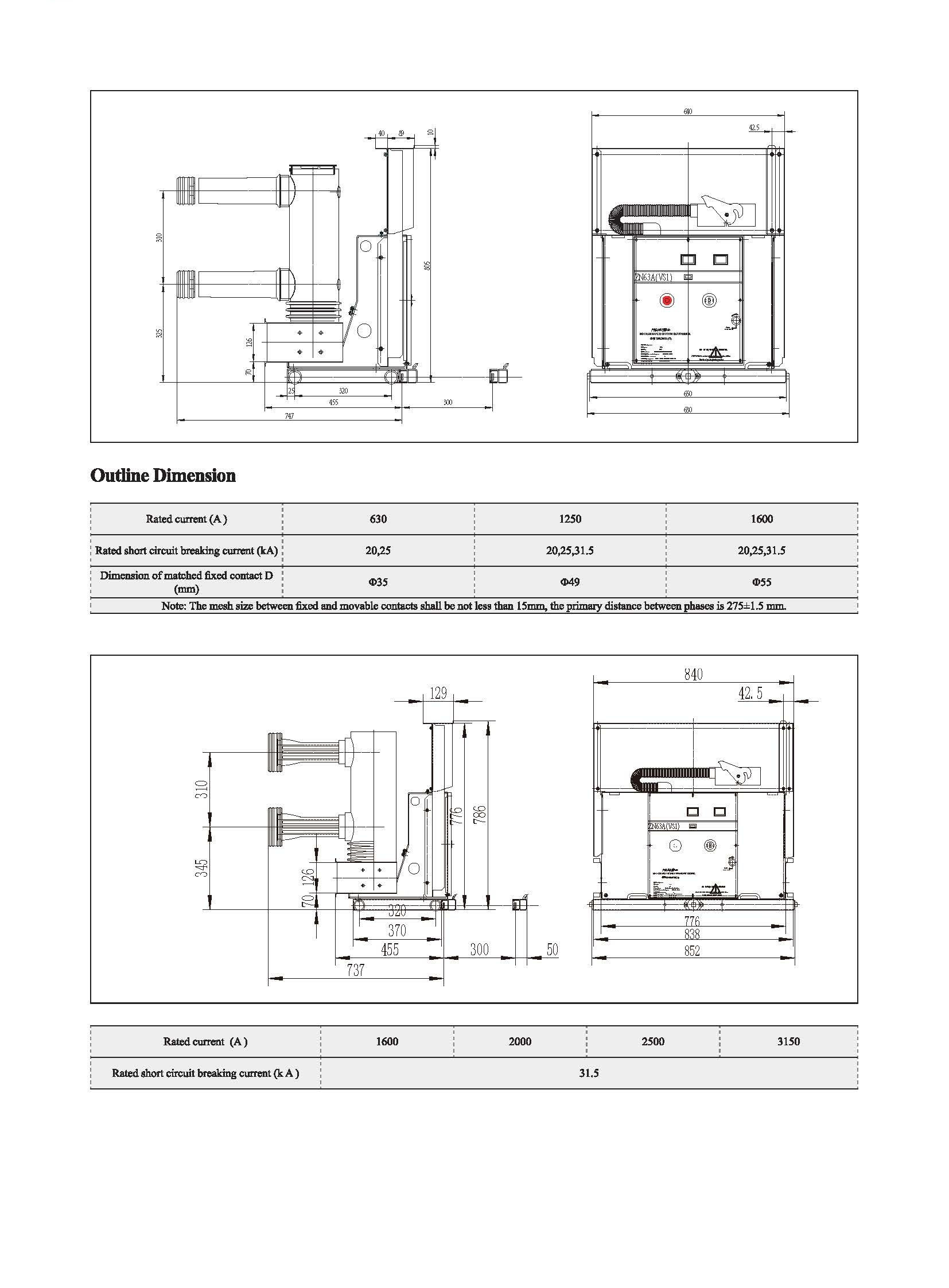 ♦ JB/T 3855 Højspændings AC Vacuum Circuit-breakers